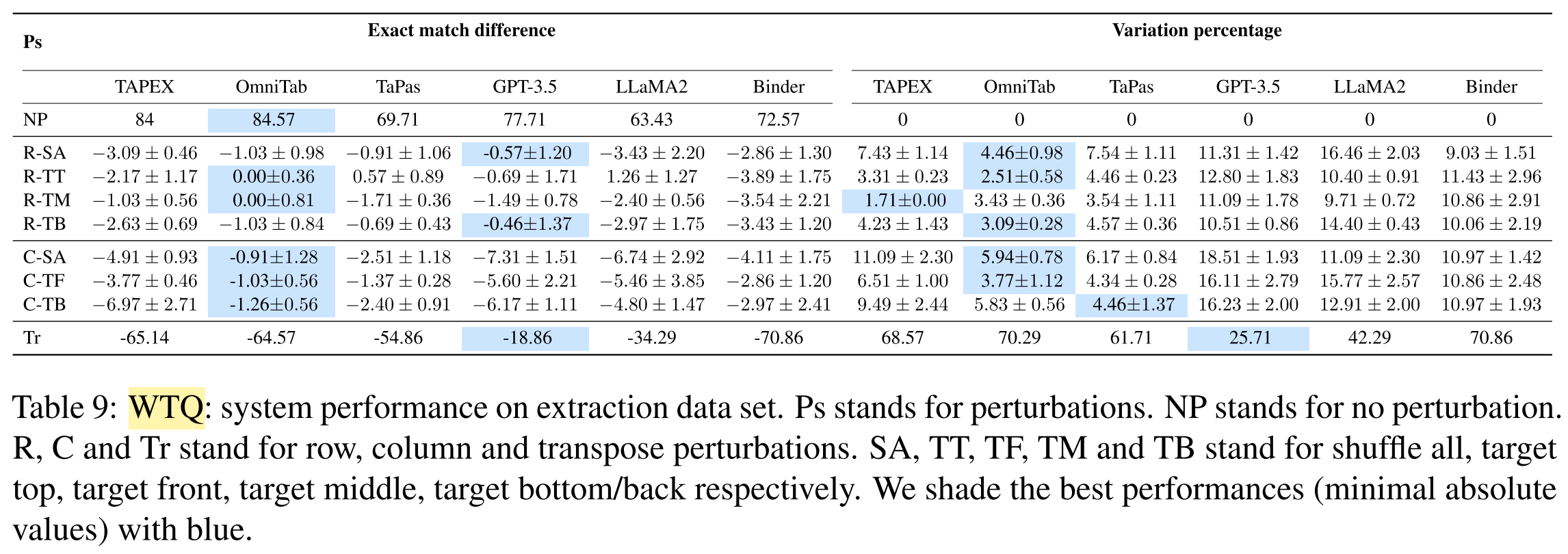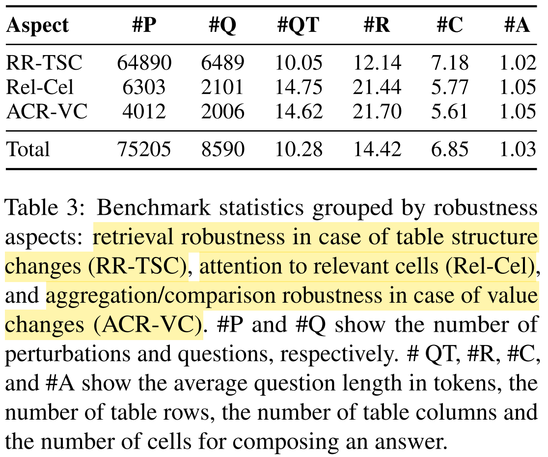 - This work disentangles the various aspects of TQA systems’ robustness, which provides fine-grained analyses and deep insights into the underlying cause of their robustness issues.