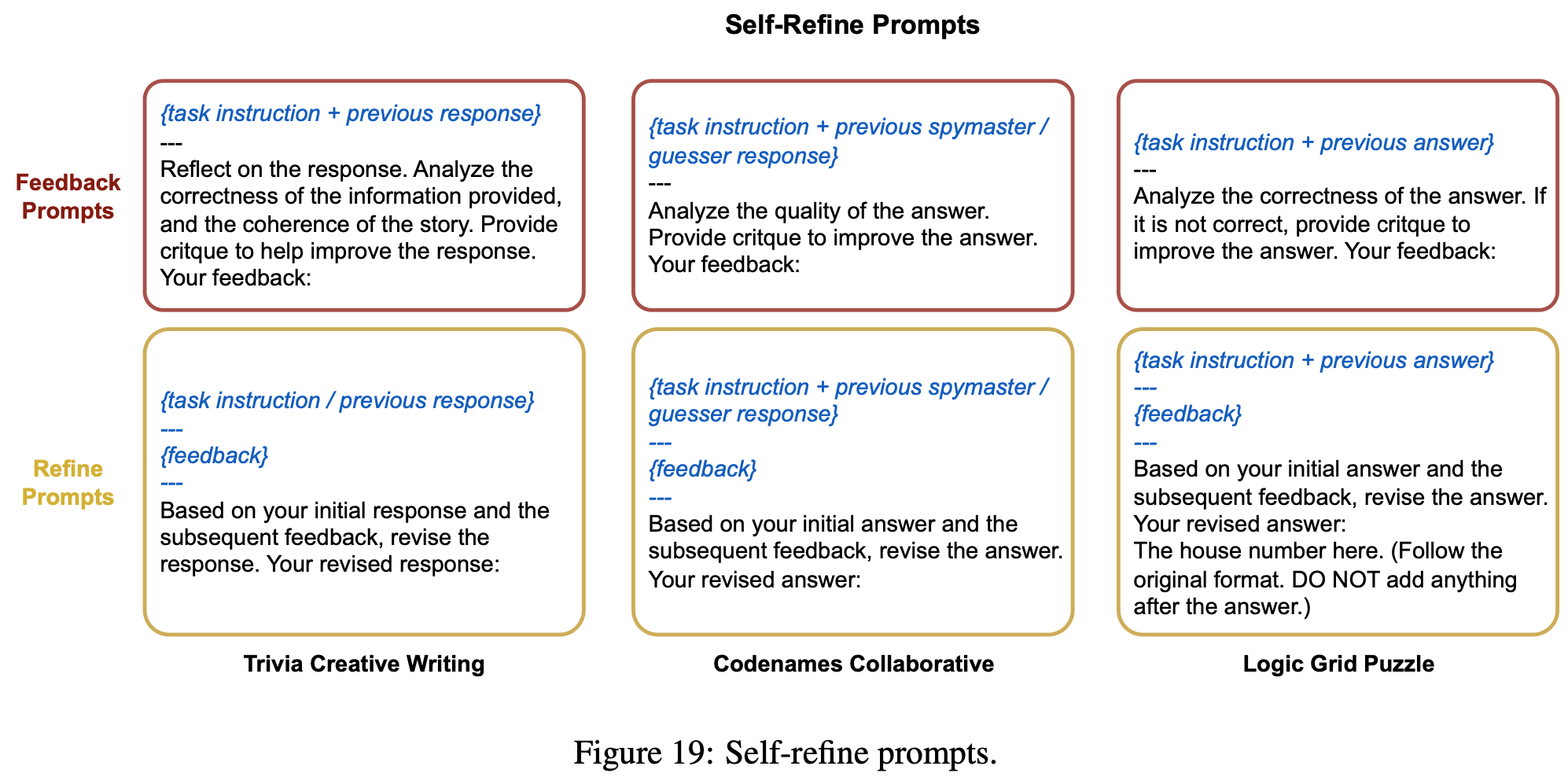 Self-Refine prompts:
