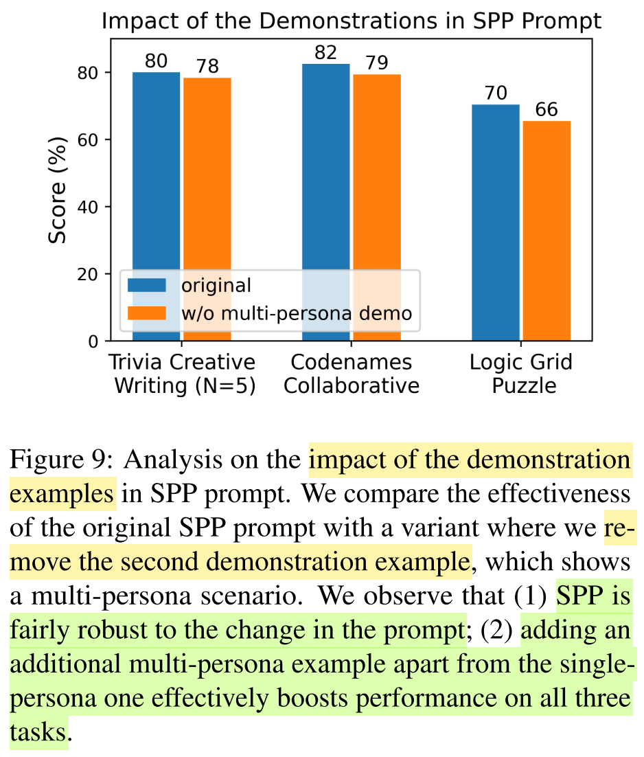- Ablation study: remove the second demo example which contains more than two personas