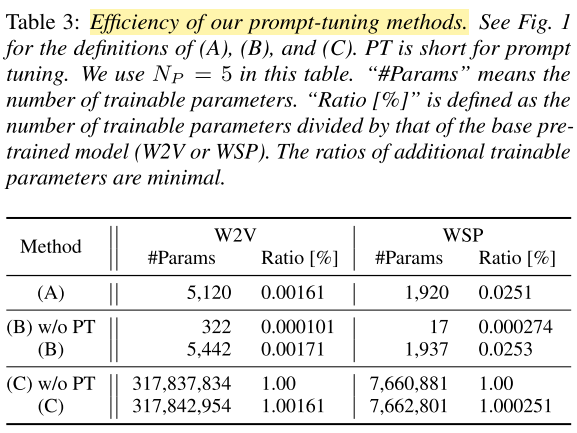 - Result: Prompt tuning of type A and B require only minimal additional trainable parameters.
