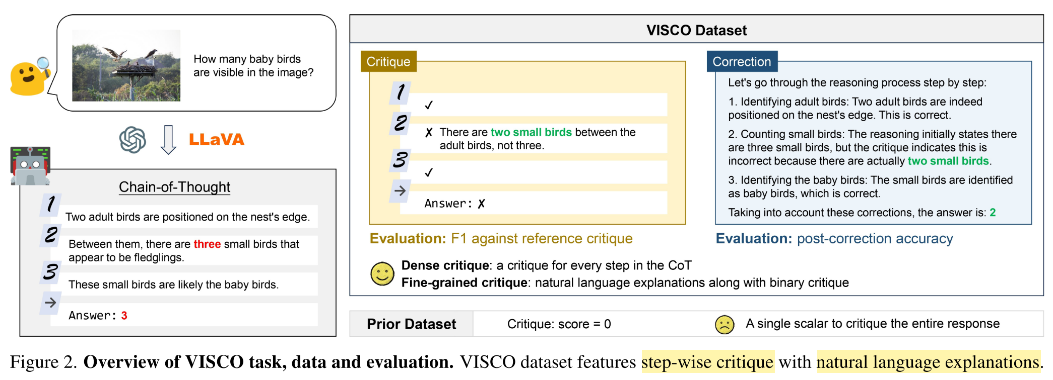 Wu, Xueqing & Ding, Yuheng & Li, Bingxuan & Lu, Pan & Yin, Da & Chang, Kai-Wei & Peng, Nanyun. (2024). VISCO: Benchmarking Fine-Grained Critique and Correction Towards Self-Improvement in Visual Reasoning. 10.48550/arXiv.2412.02172.