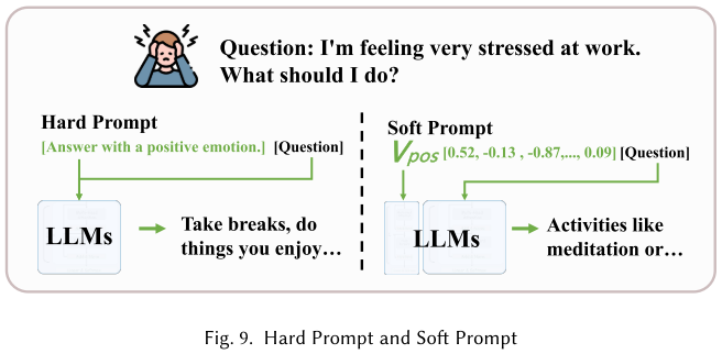 - Prompt Engineering: Manipulate input prompts, either in natural language (hard prompts) or continuous vector embeddings (soft prompts), to steer the generation process.