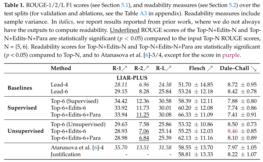 - Unsupervised/Supervised Top-N + Edits-N + Para: paraphrase the explanations generated by the second model