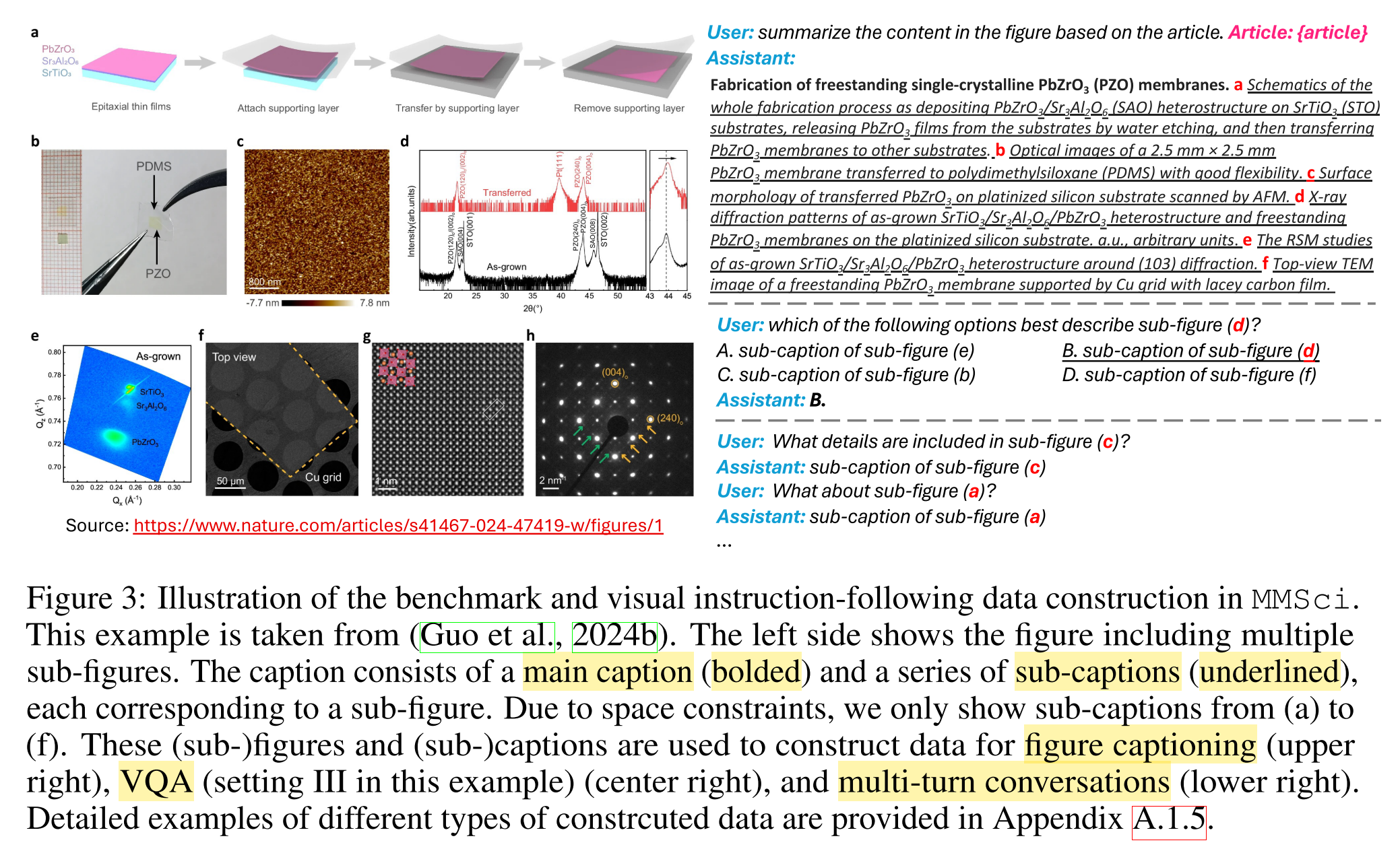Li, Zekun, Xianjun Yang, Kyuri Choi, Wanrong Zhu, Ryan Hsieh, HyeonJung Kim, Jin Hyuk Lim et al. “Mmsci: A dataset for graduate-level multi-discipline multimodal scientific understanding.” arXiv preprint arXiv:2407.04903 (2024).