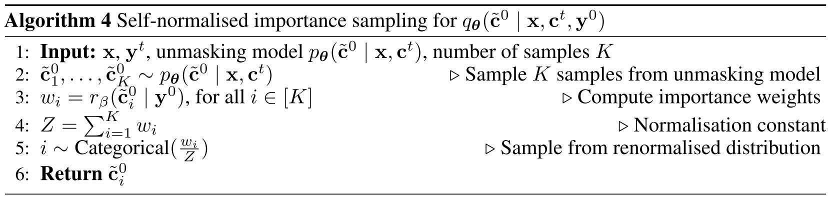 Use the REINFORCE Leave-One-Out (RLOO) estimator. Given: - a time step , - samples and - samples $\tilde{c}_1^{0}, … ,\tilde{c}s^{0} \sim p{\theta}(c^0 \mid c^t, x)$, apply: